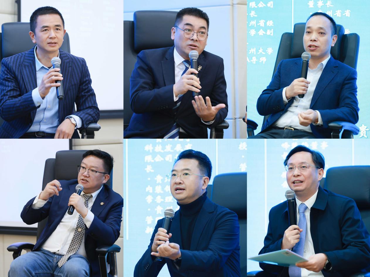 仪式第七项,贵州大学MBA企业家成长营导师圆桌论坛“新质生产力赋能高质量创新创业”,参加此次圆桌论坛的导师有:贵州省物资现代物流集团有限责任公司董事长罗亨文、贵州楚天两江环境股份有限公司董事长胡文、贵州佰仕佳科技集团董事长易永祥、中国国际文化交流中心能源经济研究院国际交流部主任、北京蓝图公益基金会副秘书长吴迪、贵阳九宇科技发展有限公司董事长赵宇、贵州循美文旅产业有限公司董事长刘波以及MBA教育中心主任项凯标教授。各位嘉宾就新质生产力内涵、科技创新战略布局、创新人才、科创平台、成果转化等关键领域进行深入探讨,交流改革创新经验,探索未来发展路径。互动交流环节,学员及导师结合贵州实际,从不同视角阐述了科技创新如何更好地赋能贵州新质生产力,对贵州推进高质量发展提出了一系列宝贵建议。最后大家一致认为,新质生产力赋能高质量创新创业需要技术创新引领、人才智力支撑、资金持续投入、政策有力保障以及良好创新生态协同推进。