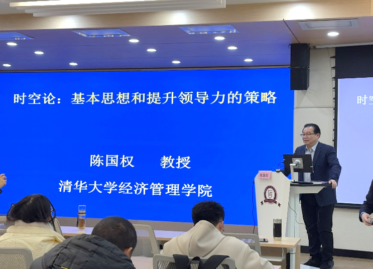 2024年12月16日下午,贵州大学管理学院在致远楼305报告厅举办了第15期致远大讲坛,教育部长江学者特聘教授——清华大学经济管理学院陈国权教授受邀,开展主题为《时空论:基本思想与提升领导力的策略》的专题讲座,讲座由管理学院院长李烨教授主持。本次讲座聚焦时空论这一新兴理论视角,深入探讨了时空思维对领导力发展的深刻影响及其在实际管理中的应用。