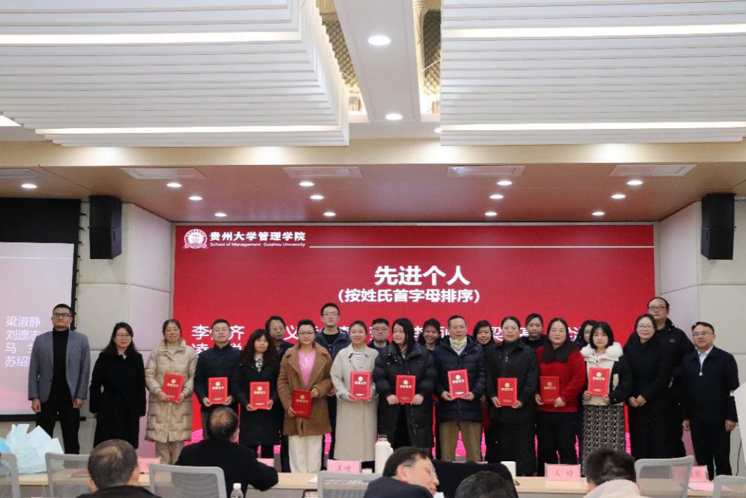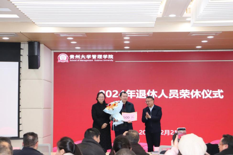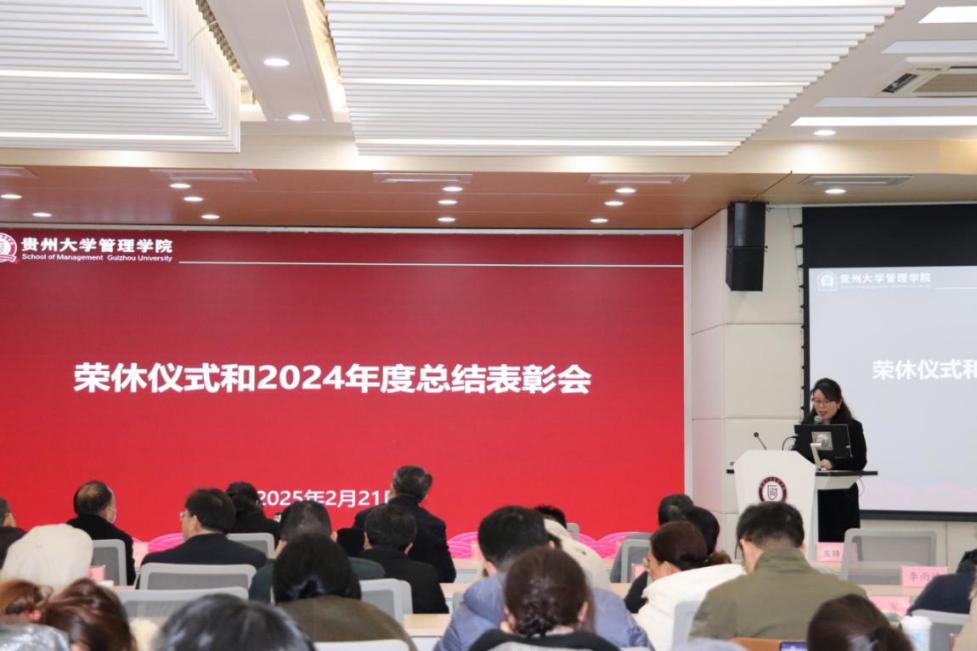 邓琳副书记主持荣休仪式和2024年度总结表彰会。会上,邓琳副书记代表学院为荣休教职工颁发礼品,并表达了学院对他们多年辛勤工作的崇高敬意,感谢他们为学院发展做出的卓越贡献。随后,李烨院长回顾了管理学院2024年的工作,全面总结了学院在教学、科研、国际化、服务社会等方面取得的成绩与经验。大会还表彰了学院2024年年度先进集体和先进个人,进一步提振士气,凝心聚力,为2025年学院各项工作高质量发展奠定了坚实基础。