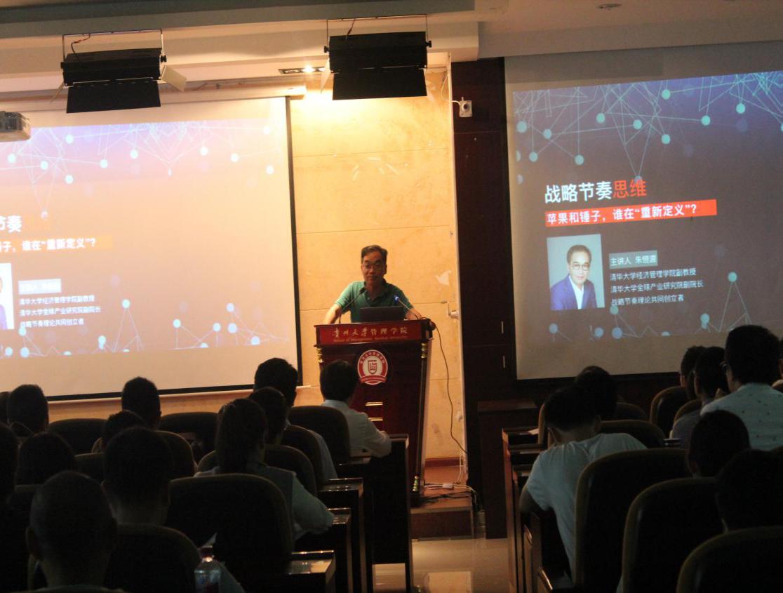 2018年5月27日下午三点半,清华大学全球产业研究院副院长朱恒源博士一行做客乐鱼(中国)MBA管理知识讲堂,以“在动荡的商业世界超越竞争”为题,在管理学院报告厅与百余位MBA同学分享了企业应该如何通过管理战略节奏获取与之相匹配的竞争优势等管理问题。管理学院院长李烨教授主持了本次讲座。