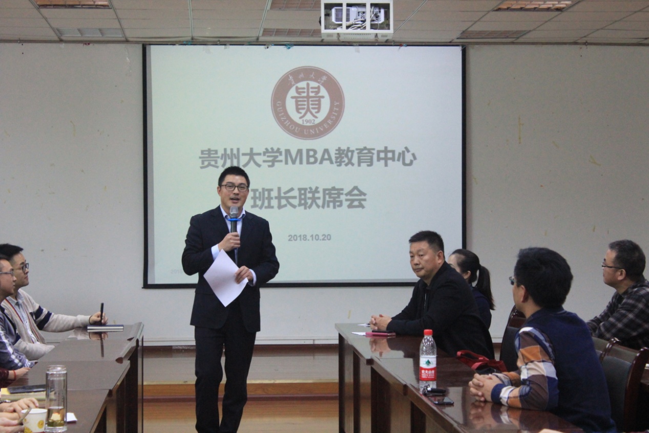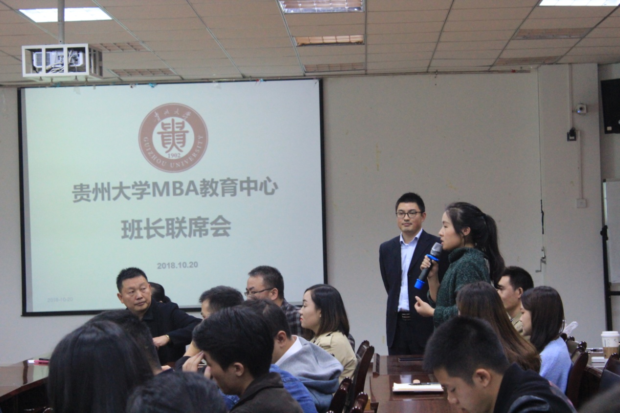 2018年10月20日,中午13:30分在贵州大学MBA教育中心报告厅举行了贵州大学 2018-2019学年第一期MBA班长联席会。