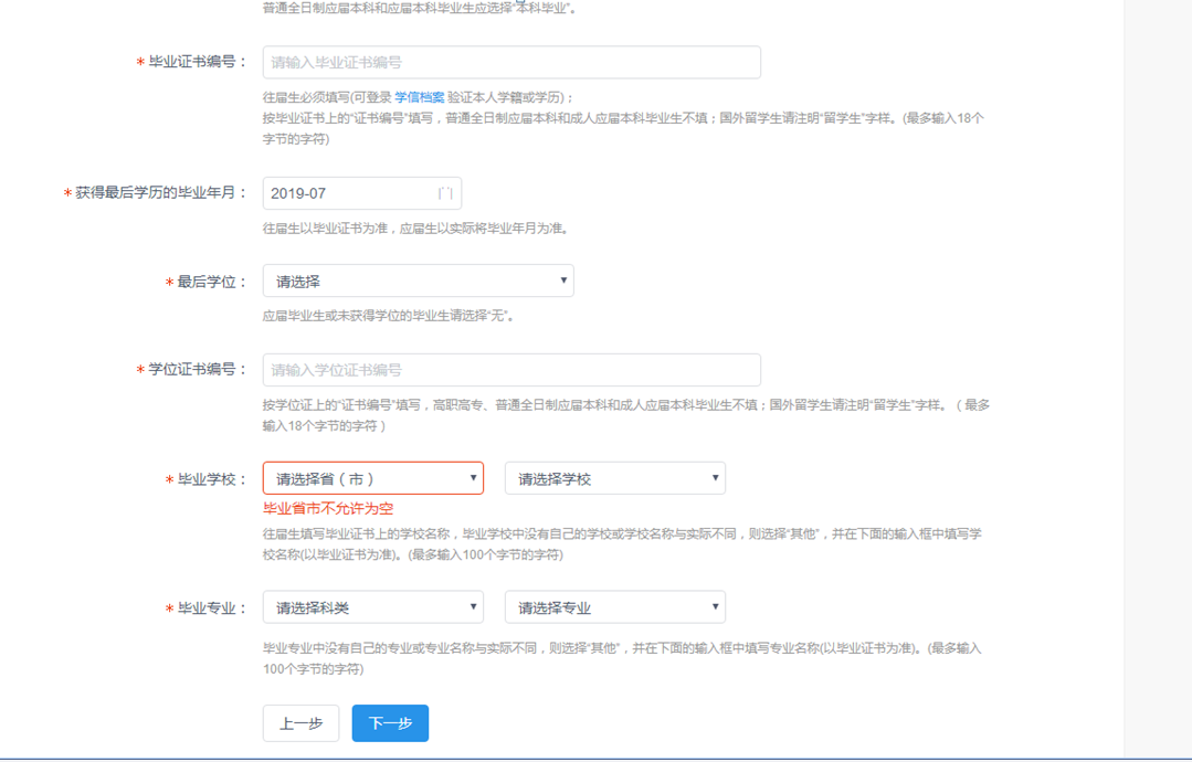 第一步:填写学籍学历
