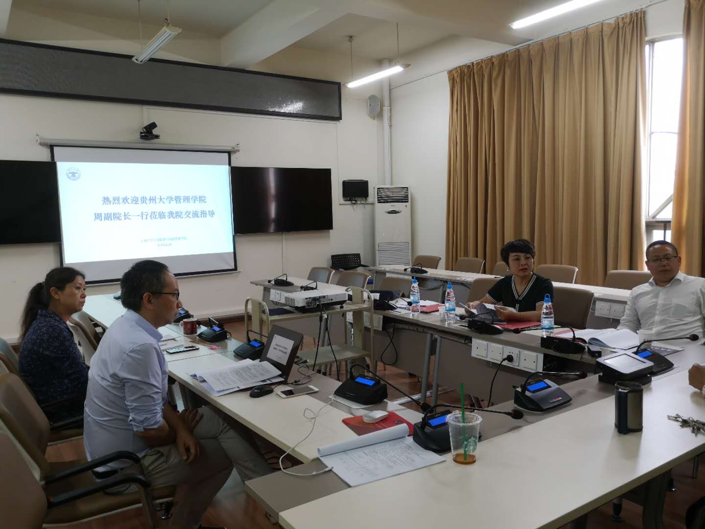 接着,高旅副院长向贵州大学一行人介绍了云南大学申请中国高质量MBA认证的情况,并想写讲解了如何撰写申请认证报告及注意事项。