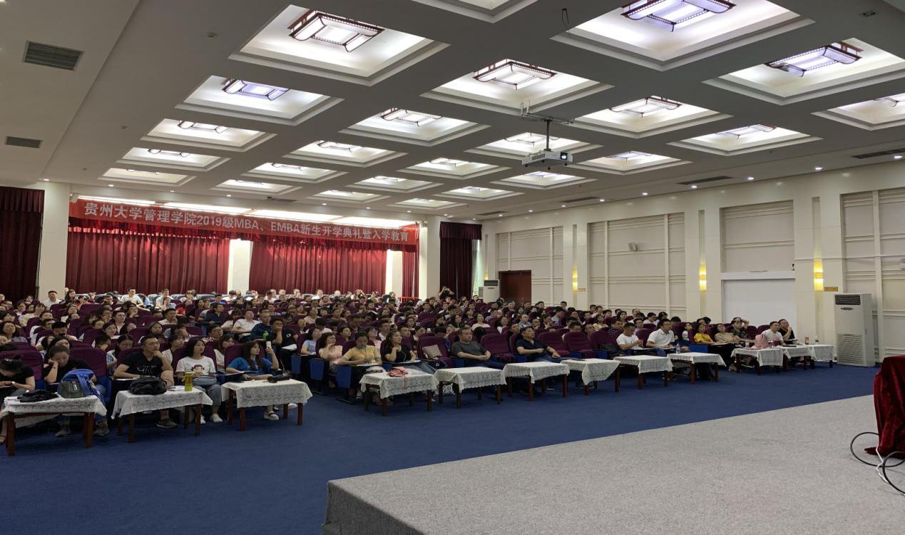 9月17日下午,校党委书记李建军在东校区体育馆为2019级研究生新生作题为《薪火相传 坚毅笃行——不忘初心、牢记使命 做大写的贵大人》的主题报告。管理学院MBA新生共计300余人到场聆听报告。
