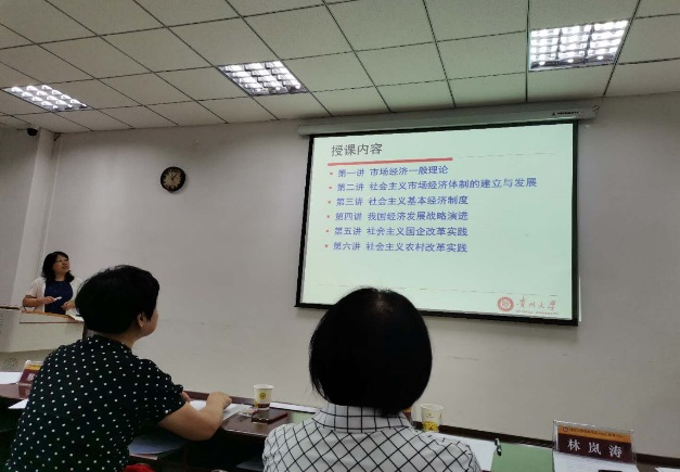 本次采用随堂试讲方式,共有7位教师参加新开课程试讲,试讲课程分别为《经济法》、《数据模型与决策》、《社会主义市场经济理论与实践》、《商务英语》、《管理学原理》和《运营管理》。