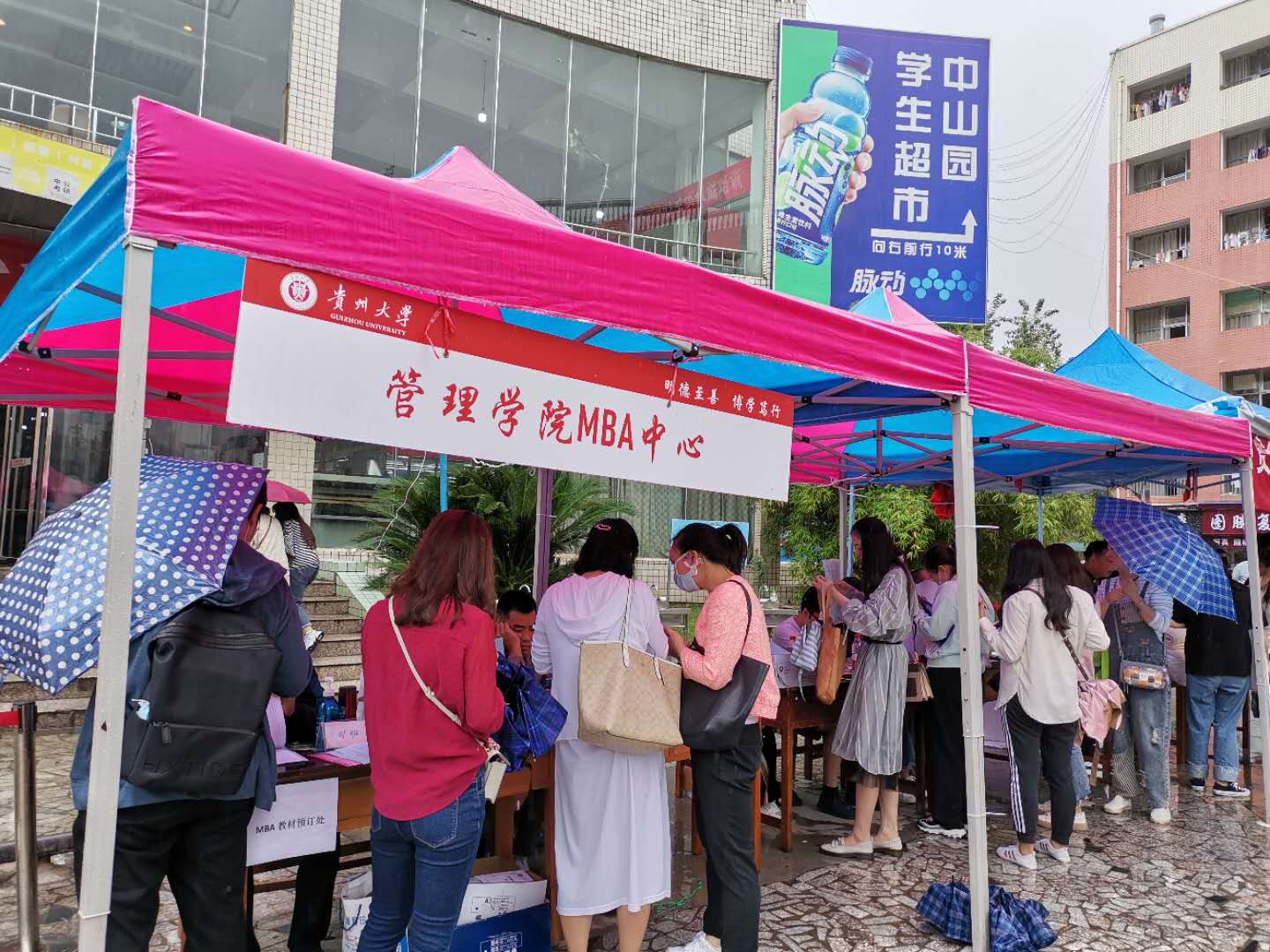 911日,乐鱼(中国)MBA教育中心在贵州大学中山园组织了新生迎接工作。天空一直飘雨,但丝毫没有影响新学员来校报到的热情,当天共迎接2020MBA新学员300余名。