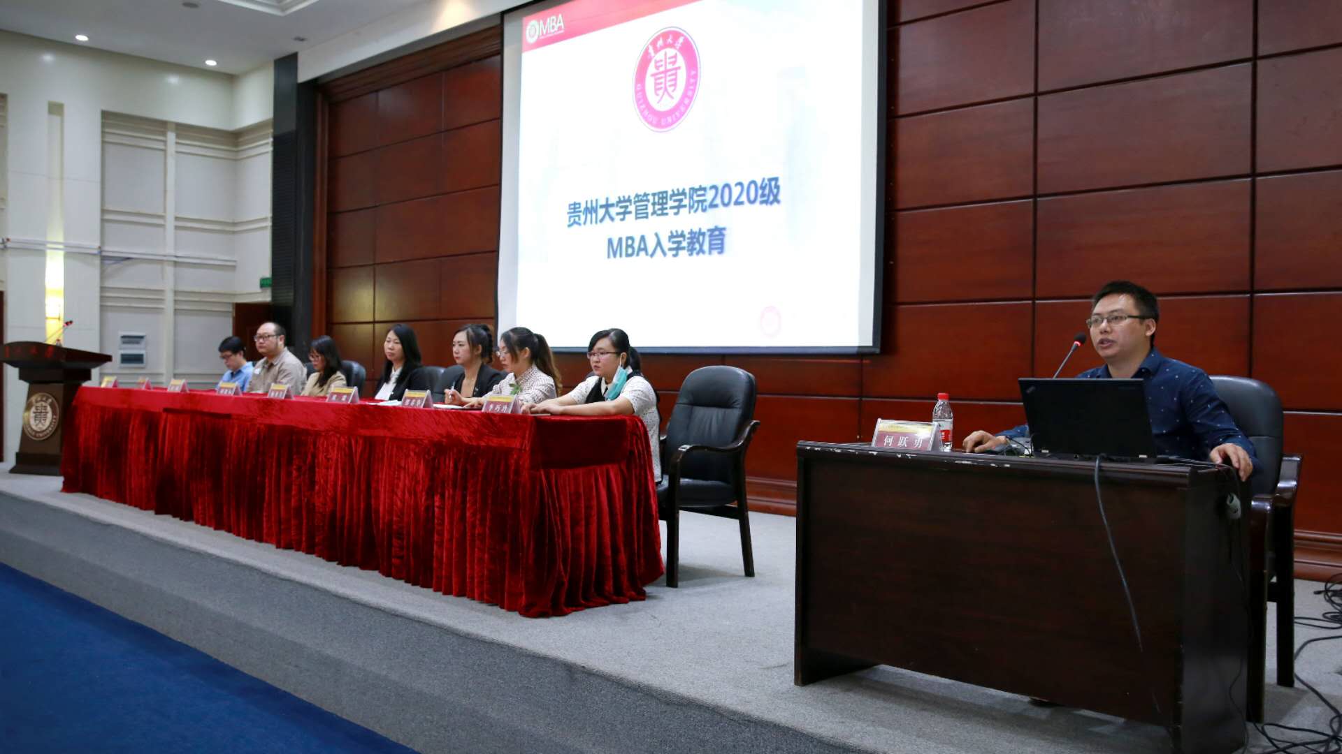 贵州大学研究生院院长杜滨教授、乐鱼(中国)党委书记王秀峰教授、乐鱼(中国)院长李烨教授、乐鱼(中国)副院长王婷教授、乐鱼(中国)副院长宋山梅教授、乐鱼(中国)副院长周莉莉教授、贵州大学管理学院MBA导师代表张莉副教授、管理学院各科室及部门负责人、系主任,各班班主任老师以及MBA和EMBA全体工作人员、300余名MBA新生、100余名EMBA及管理学院全日制研究新生参加了此次开学典礼。