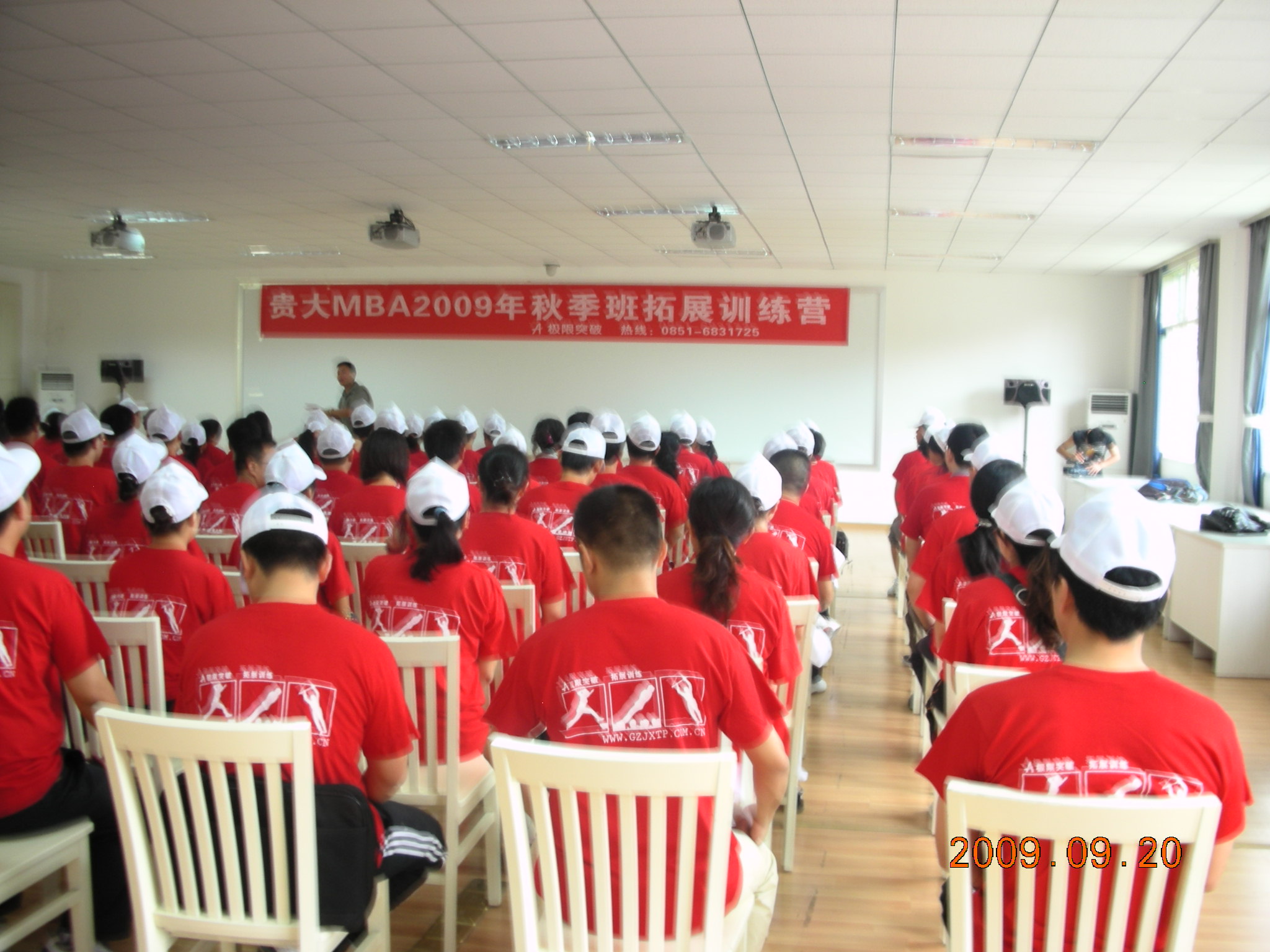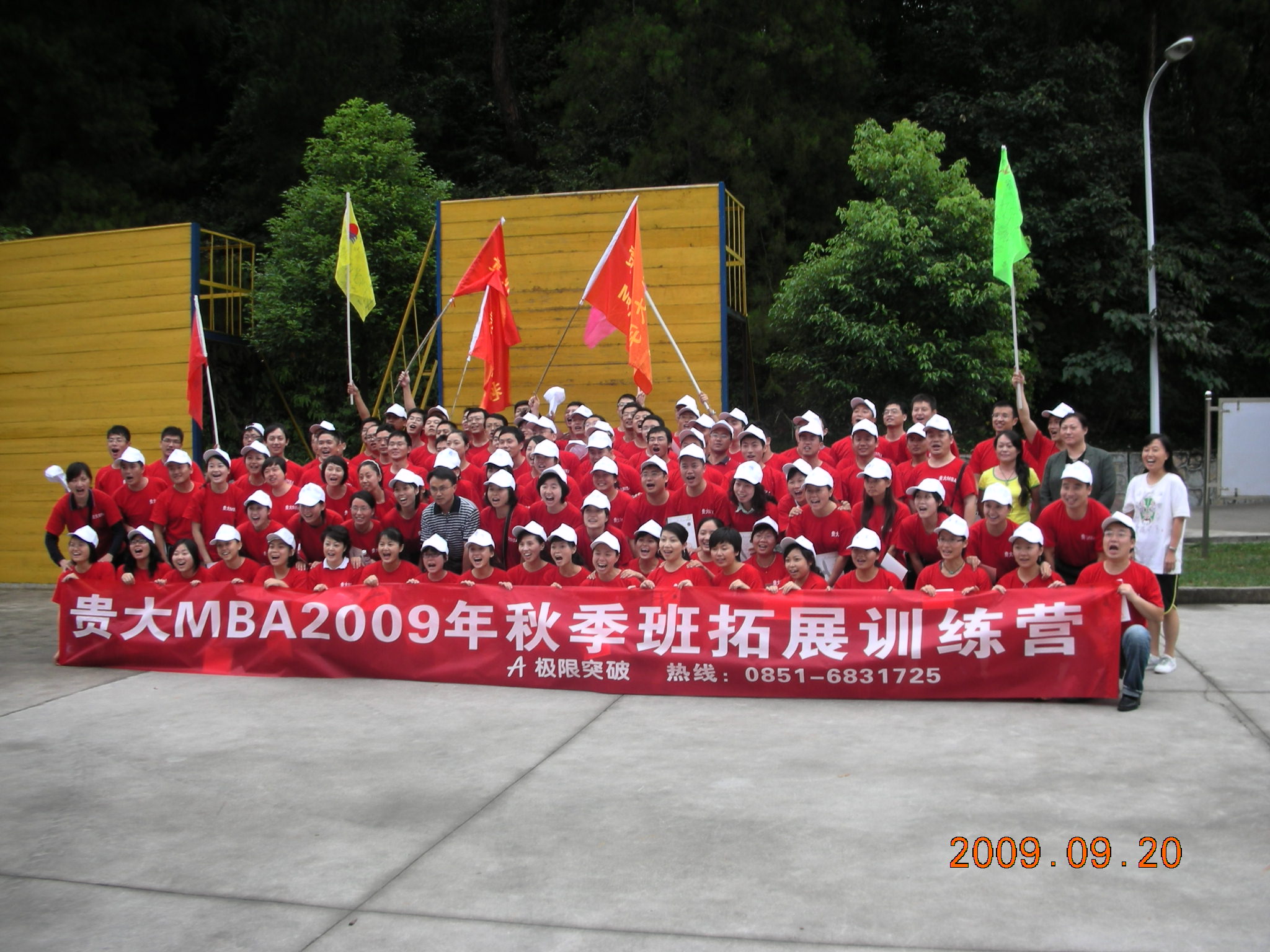 2009年9月20日,管理学院09秋季MBA学员在中心副主任刘梅老师和班主任的带领下,前往乌当区贵州陆军预备役步兵师训练基地拓展训练中心开展了为期一天的素质拓展训练。学院各级领导高度重视本次活动的组织筹备工作,并在各方面给予此项活动大力支持。