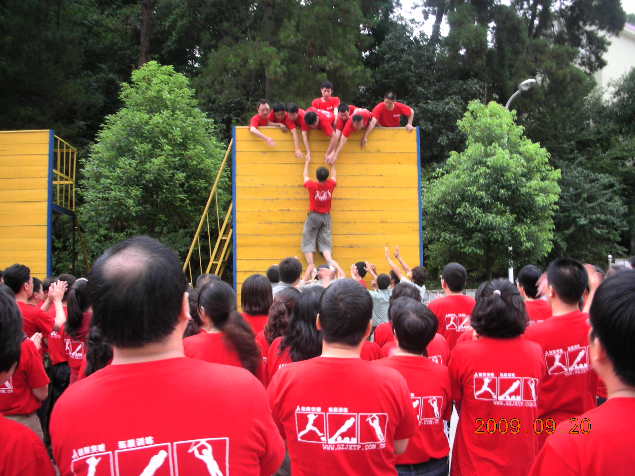 在这一天的训练当中,一百多名学员被分成4个小分队,分别在专业培训师的指导下亲身体验了经典的传统素质拓展训练项目。每队都确定了自己的队名、口号、队歌,例如“野狼队”、“A1队”。中午由于下雨,学员们就在室内进行了“七巧板拼图”项目和“营销实战演练”项目的训练,锻炼和培训了学员们的团队合作精神。下午学员们进行了“弹无虚发”项目训练,学员们充分发挥了动手创造能力,