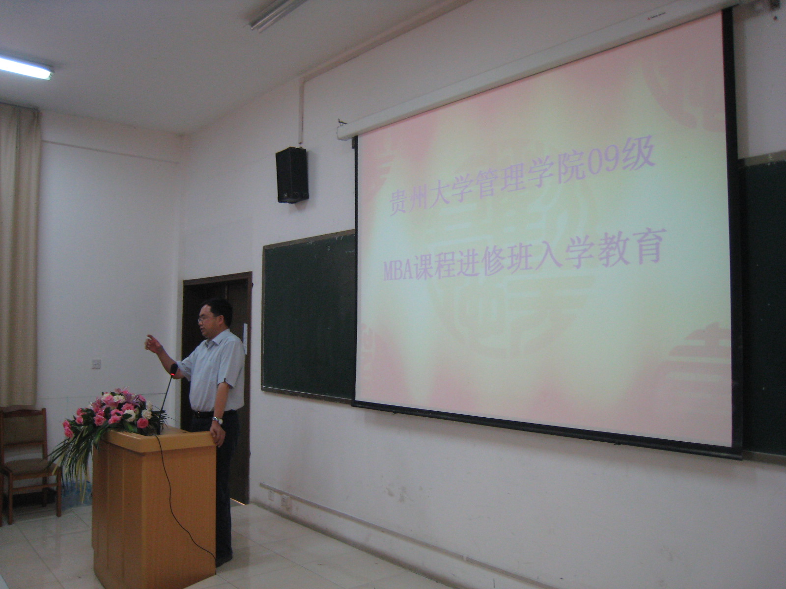 管理学院副院长洪名勇教授为新学员介绍了管理学院的基本情况,MBA教育中心主任李烨博士介绍了贵州大学MBA教育项目的发展沿革和下一步发展思路,仪式由管理学院党委书记陶玉顺教授主持。
