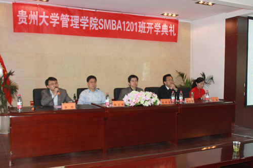2012年4月21号在乐鱼(中国)报告厅举行了2012级春季SMBA开学典礼。SMBA1201班61名新学员、贵州大学研究生院副院长陈祥盛教授、乐鱼(中国)党委书记陶玉顺教授、管理学院副院长林岚涛教授、MBA任课教师代表、MBA教育中心全体工作人员参加开学典礼仪式。在开学典礼仪式上,贵州大学研究生院副院长陈祥盛教授代表学校向各位SMBA新学员表示衷心的祝贺和热烈的欢迎!管理学院副院长林岚涛教授与同学们交流了学习和科研的情况。SMBA1201班学员代表也做了精彩发言。仪式结束后,MBA教育中心主任李烨教授为SMBA1201班全体学员介绍了贵州大学MBA教育项目的培养流程及相关要求,并殷切希望大家协调好学习与工作、学习与家庭的关系,和谐学习、愉快学习,早日完成学业。
