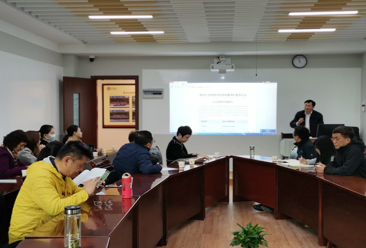 2021年4月15日上午,乐鱼(中国)MBA教育中心在202教室举行“2021年管理学院MBA、EMBA教学及学位质量研讨会”。贵州大学研究生院院长杜滨教授、管理学院副院长周莉莉教授、30余位MBA中心任课老师及研究生导师、MBA中心主任项凯标教授、EMBA中心主任李雨峰老师、MBA中心副主任何跃勇老师、MBA中心办公室主任邓琳老师以及中心工作人员共40余位人参加了此次研讨会。研讨会由副院长周莉莉教授主持。