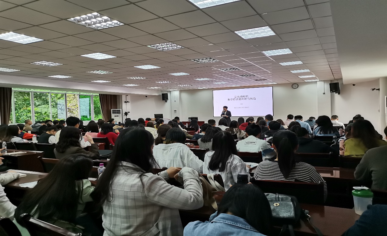 在问答环节,在场MBA研究生分别从数字垄断、数字货币、信息泄露、以及贵州农业如何与数字化结合等方面进行提问,张教授提纲挈领、幽默风趣的回答,不仅活跃了现场氛围,还给大家留下了深刻的印象。最后,历时一个半小时的讲座在热烈的掌声中圆满结束。