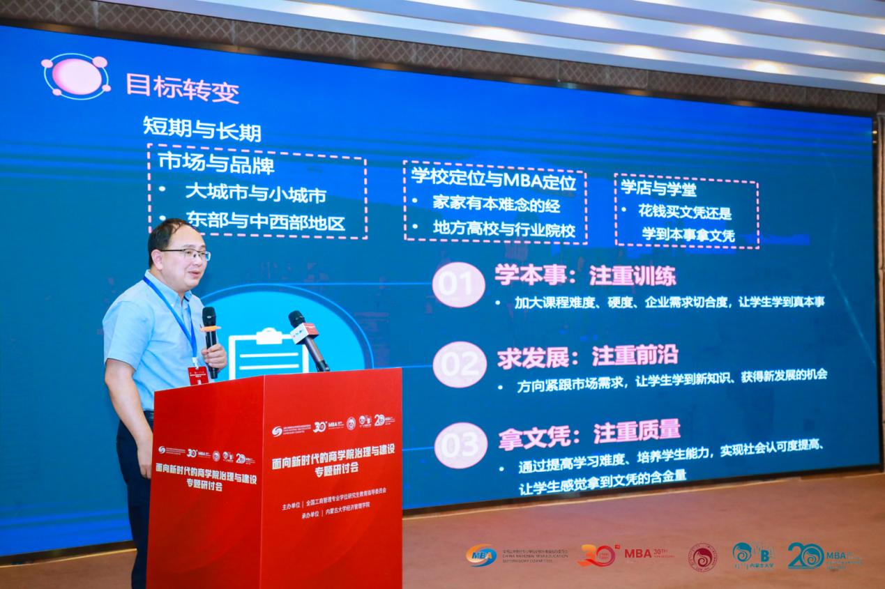 2021729日,由全国工商管理专业学位研究生教育指导委员会(以下简称“全国MBA教指委”)主办,内蒙古大学经济管理学院承办的“面向新时代的商学院治理与建设”专题研讨会在呼和浩特市成功举办。乐鱼(中国)副院长周莉莉教授和MBA教育中心副主任何跃勇老师参加了此次研讨会