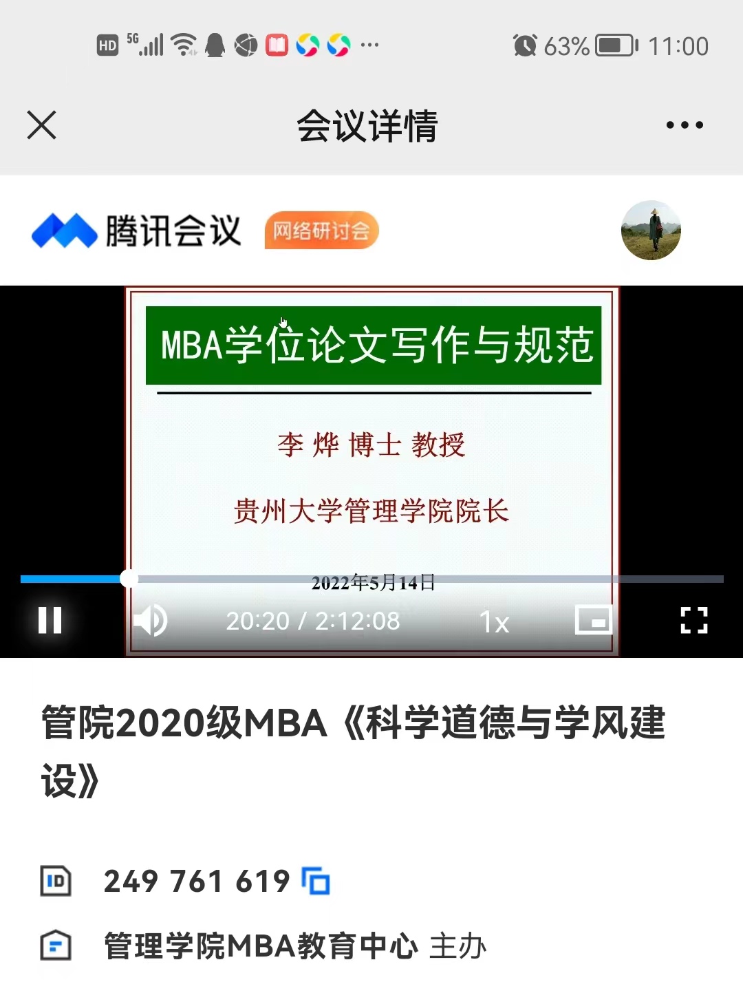 2022年5月14日,乐鱼(中国)MBA教育中心以腾讯会议的方式举办了《科学道德与学风建设》系列讲座,讲座分三场进行,分别由乐鱼(中国)院长李烨教授、贵州大学党委正处级组织员周莉莉教授、乐鱼(中国)许为宾副教授主讲,280余名2020级MBA学生全程在线聆听。会议由乐鱼(中国)MBA教育中心副主任何跃勇老师主持。