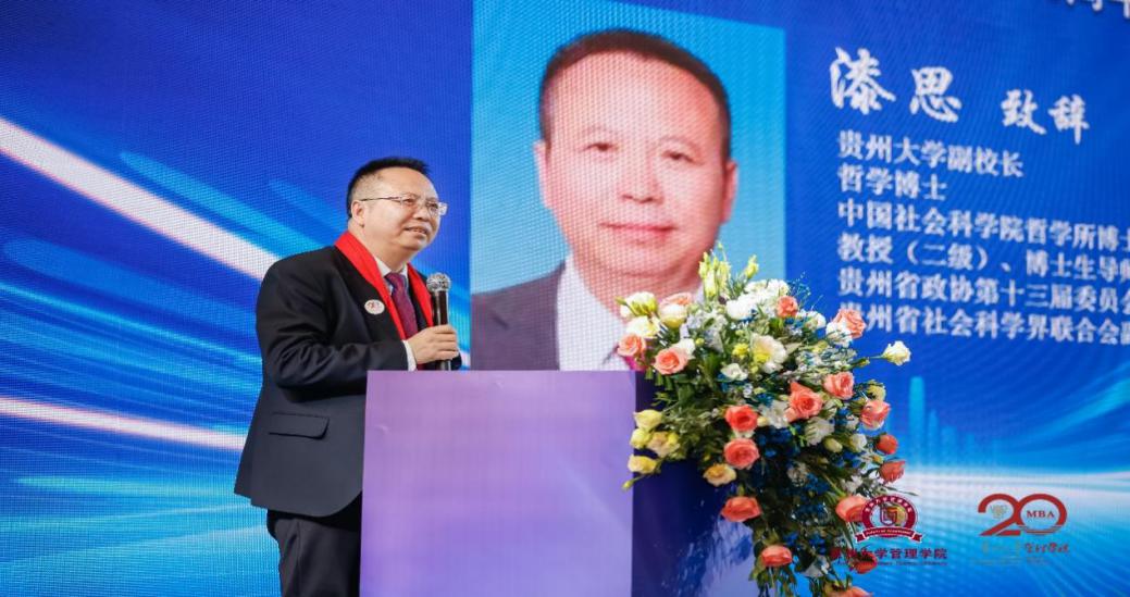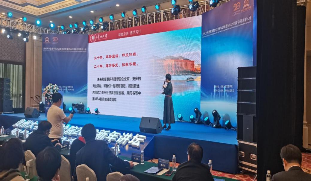 贵州大学党委委员、管理学院院长李烨教授致谢辞,李院长说:管理学院的发展特别是MBA教育项目发展壮大离不开各方的关心和大力支持,他向一直关心、支持管理学院MBA教育项目发展的各级领导、老师、校友致以诚挚的谢意。随后与大家一起回顾了管理学院MBA20年的发展足迹,讲述了管理学院MBA教育从无到有、从有到强的发展历程,并对未来MBA教育新的发展目标提出畅想。最后,李院长热切期盼大家一如既往关注、关心和支持乐鱼(中国)MBA的发展,并向与会的各位领导、嘉宾、老师和校友送上了最美的祝福。