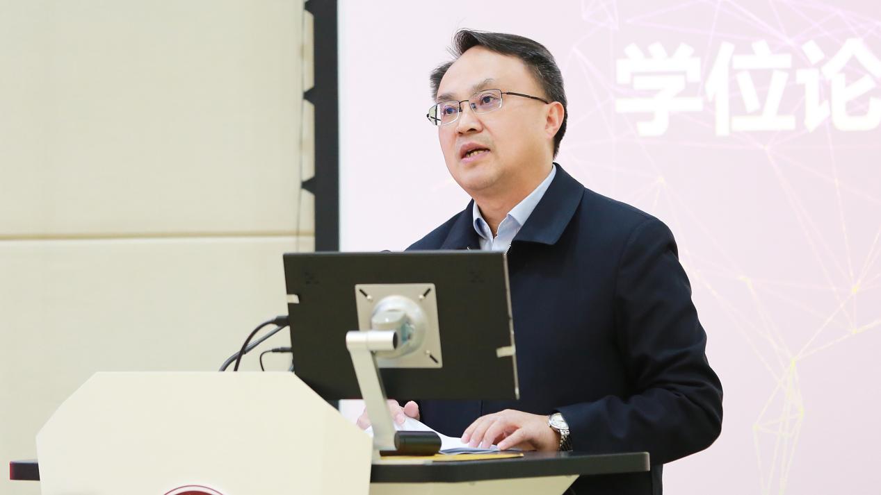 贵州大学研究生院学位管理科科长杨玥出席了本次会议,杨科长介绍了贵州大学近三年学位论文抽检的情况,并解读了《贵州大学研究生学位论文抽检结果处理办法》,还通报了学校2023年工商管理硕士(MBA&EMBA)学位论文的盲评情况。