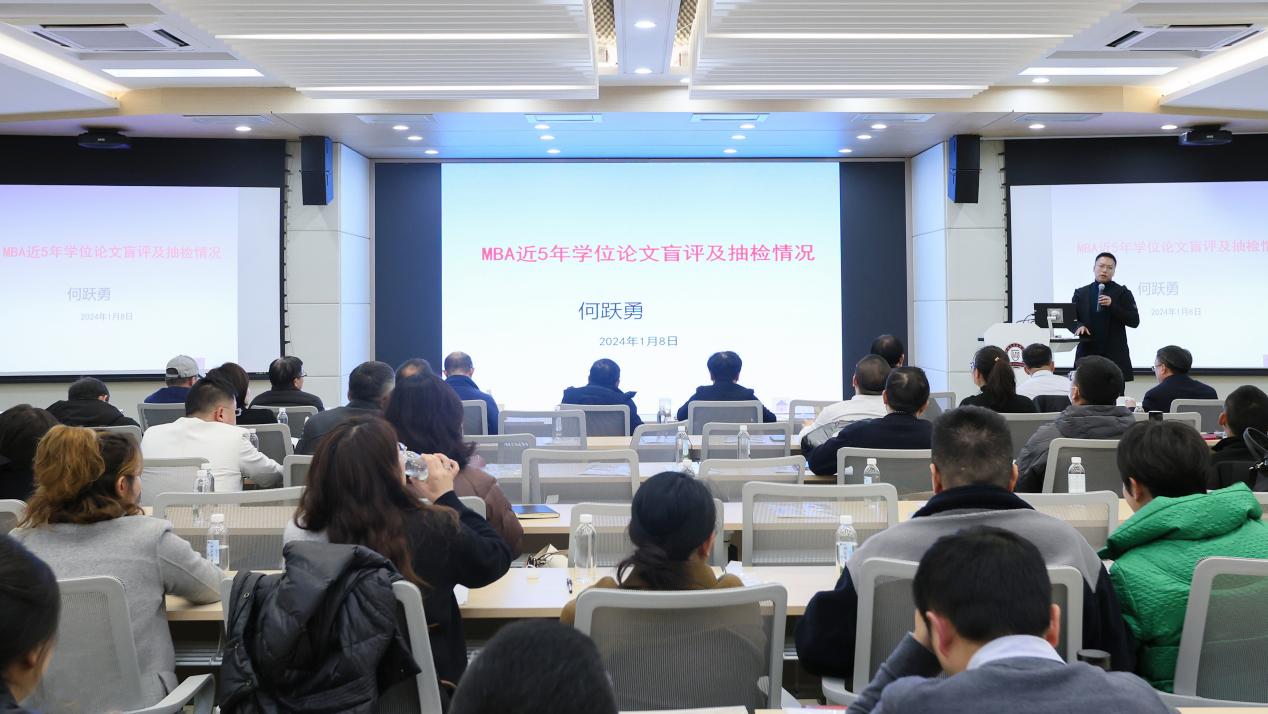 接着MBA教育中心常务副主任何跃勇老师对MBA近5年学位论文盲评及抽检情况进行通报。