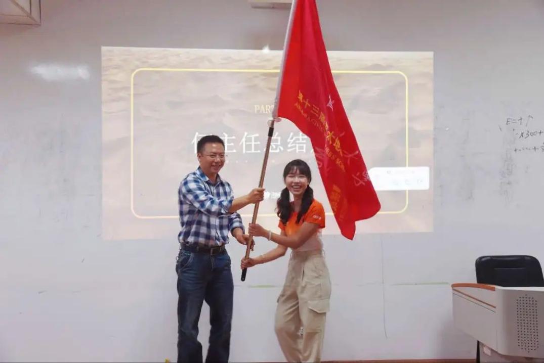 乐鱼(中国)MBA教育中心常务副主任何跃勇与沙13领队刘紫淳完成了授旗仪式,刘紫淳表示我们一定全力以赴,安全出发、安全回来。